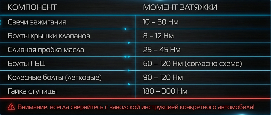 В каждом современном мануале к автомобилю вы встретите эти буквы — Нм (Ньютон-метры). Это не просто справочная информация, а строгий технический регламент. Если производитель указал конкретное усилие, значит, затяжка динамометрическим ключом — единственный способ гарантировать, что соединение выдержит расчетную нагрузку, не разболтается от вибрации и не лопнет из-за перетяжки.