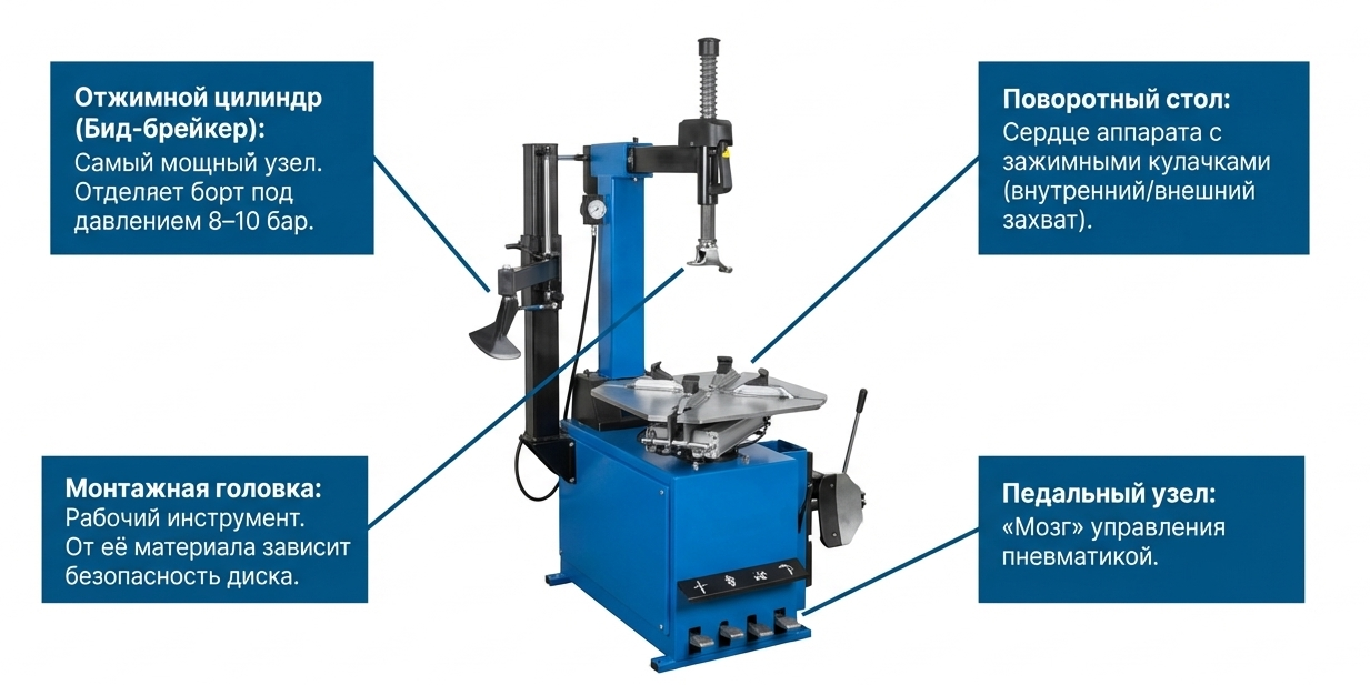 Если говорить просто, современный шиномонтажный станок — это симбиоз мощного пневматического привода и электрического двигателя. Понимание того, как устроено устройство шиномонтажного станка, позволяет избежать типичных ошибок при работе с дорогими дисками.