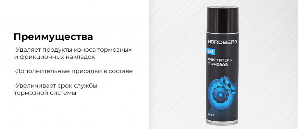 Профессиональное средство для очистки механизмов тормозной системы и сцепления NORDBERG LS1 позволит эффективно произвести очистку деталей автомобиля.