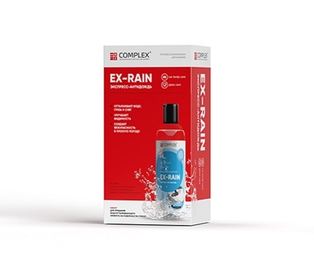 Состав набора: -EX-RAIN 0,25л -Салфетка микрофибра пропитанная 35*27 -Салфетка 20*20 см спанлейс белый (10 шт).