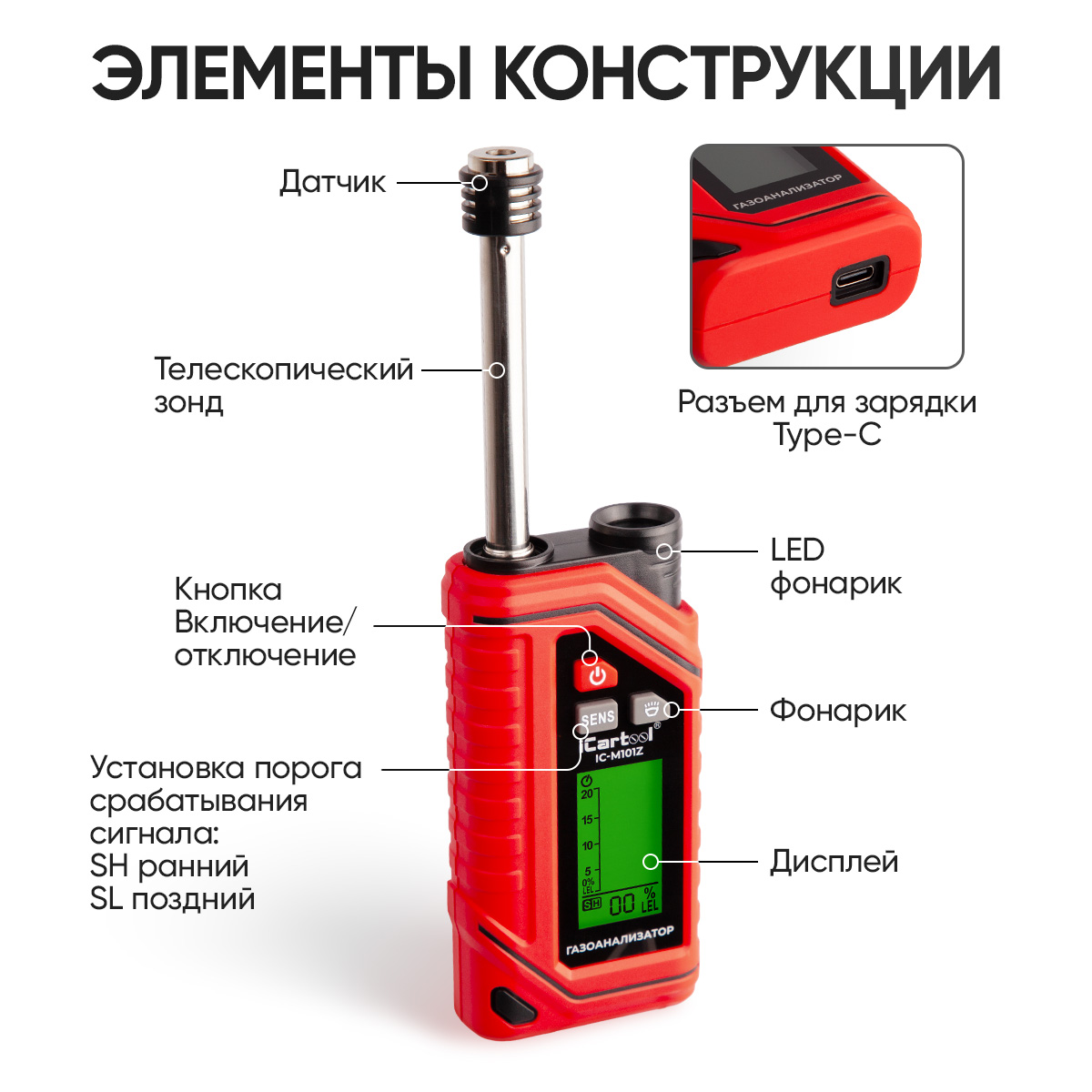 Газоанализатор цифровой iCartool IC-M101Z с аккумулятором – портативный прибор для выявления утечек горючих газов и контроля их концентрации в воздушной среде. Подходит для бытового и профессионального применения: позволяет оперативно обнаружить метан, пропан, бутан, природный и сжиженный газ, а также пары легко воспламеняющихся жидкостей (бензин, ацетон, растворители и др.)