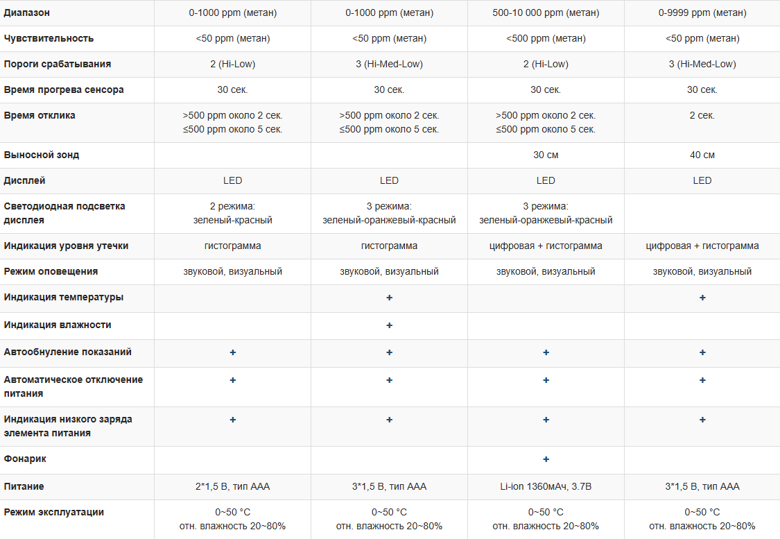 | Время отклика | >500 ppm около 2 сек. ≤500 ppm около 5 сек. |
