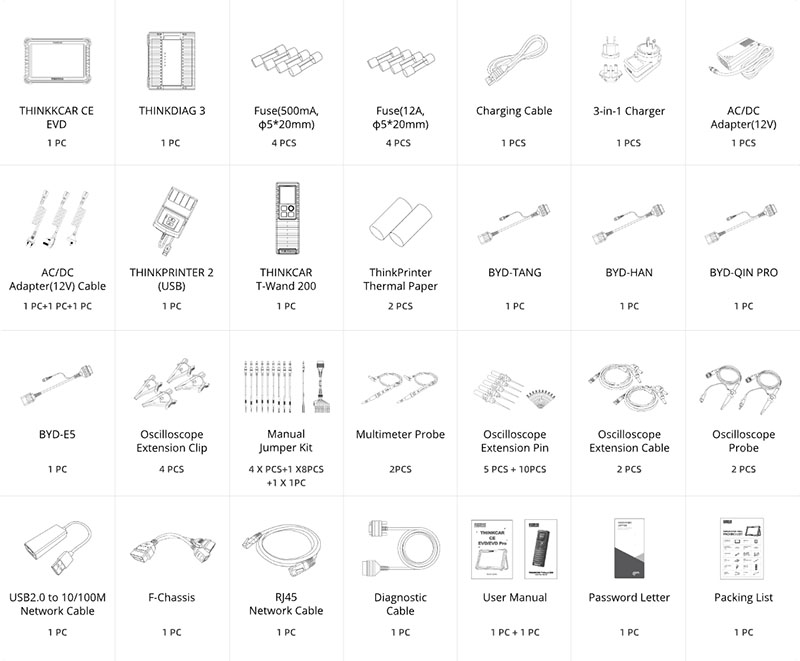 Помимо чтения ошибок, THINKTOOL CE EVD оснащен такими функциями, как полное сканирование всех систем авто, диагностику аккумуляторной батареи, кодирование ЭБУ, специальные функции для быстрого сервиса (28). Диагностический сканер CE EVD оснащен мощным 3-в-1 THINKDIAG нового поколения, спроектированного специально для работы с электромобилями. Новый VCI модуль поддерживает несколько режимов работы, включая режим мультиметра, режим осциллографа.