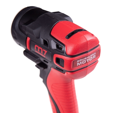 Инструмент оснащён бесщёточным двигателем и имеет соответствующую маркировку BRUSHLESS MOTOR, которая означает электронную коммутацию управления двигателем, а скоростью вращения двигателя управляют датчики Холла и контроллер. Преимуществом бесщёточных двигателей являются искробезопасность, повышенный КПД (до 50%) и, как следствие, увеличенный рабочий ресурс.