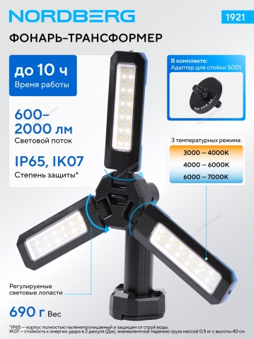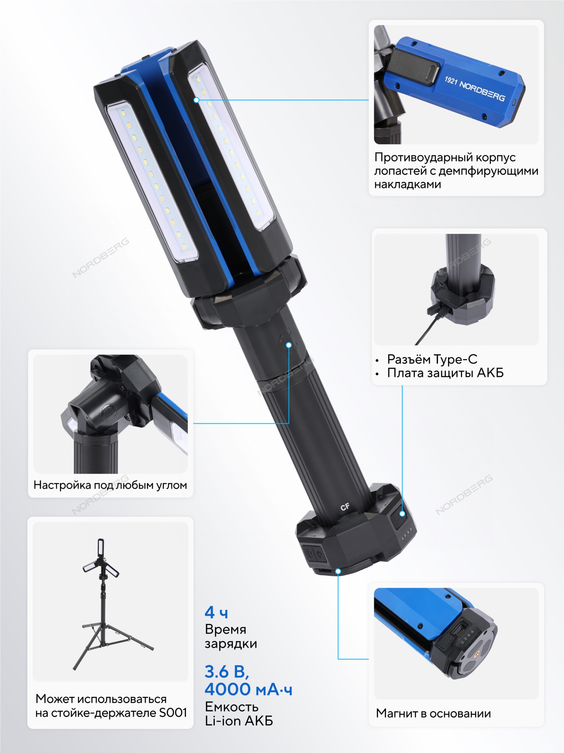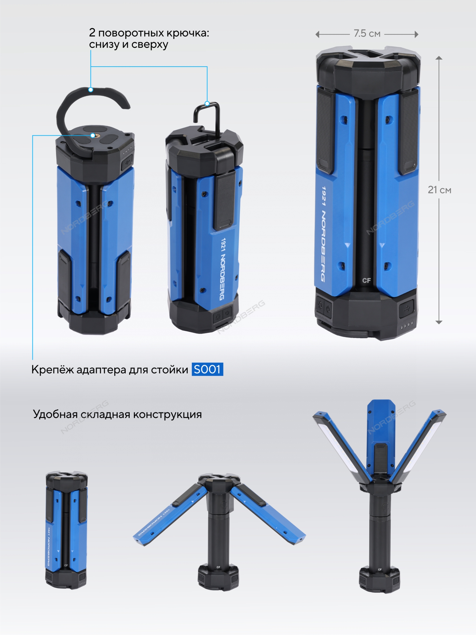 NORDBERG 1921 — это универсальный, яркий и надёжный фонарь для освещения рабочих зон. Незаменим для профессионалов, которым нужен яркий свет и свобода движения. Идеален для использования в автосервисах, мастерских, на выезде и в быту.
