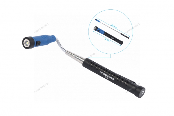 Светодиодный гибкий аккумуляторный фонарь NORDBERG 1933 – удобный компактный инструмент при проведении ремонта, обслуживания или осмотра необходимых деталей и механизмов автомобиля в автосервисах и СТО.