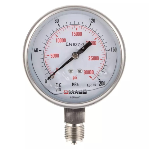 Манометр гидравлический GARWIN PRO 819050-3 (2000 бар, 100 мм, 1/2") предназначен для контроля давления, создаваемого гидравлическим насосом. Использование гидравлического манометра позволяет наиболее точно дозировать прилагаемое усилие.