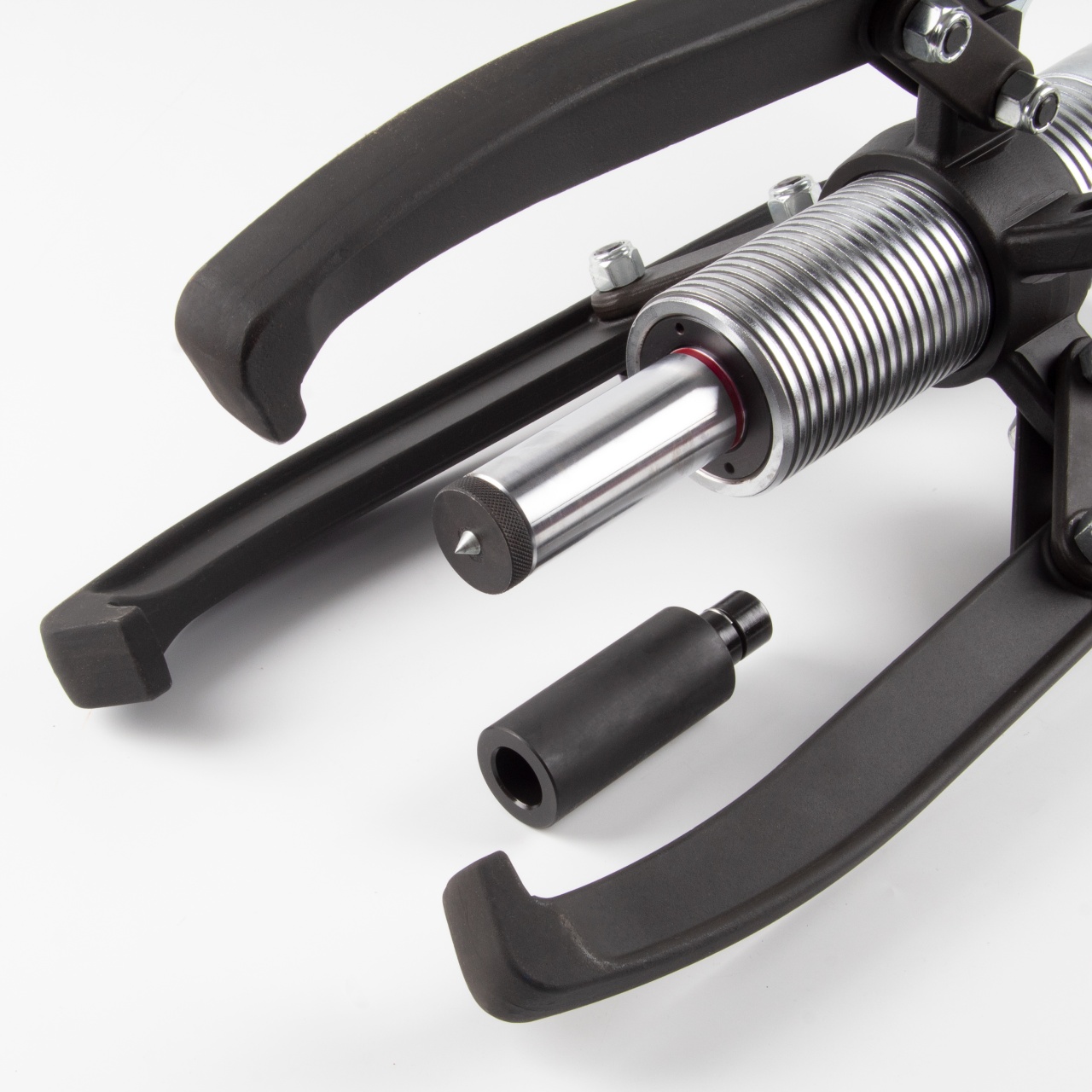 Конструкция позволяет собрать съёмник как двухлапой, так и трёхлапой компоновки, в комплектацию входит специальная сумка-чехол для переноски, а для удобства хранения съёмник поставляется в двух металлических боксах. Гидравлическая система съёмника полностью заправлена маслом и не требует дополнительной подготовки. Съёмник полностью готов к работе.