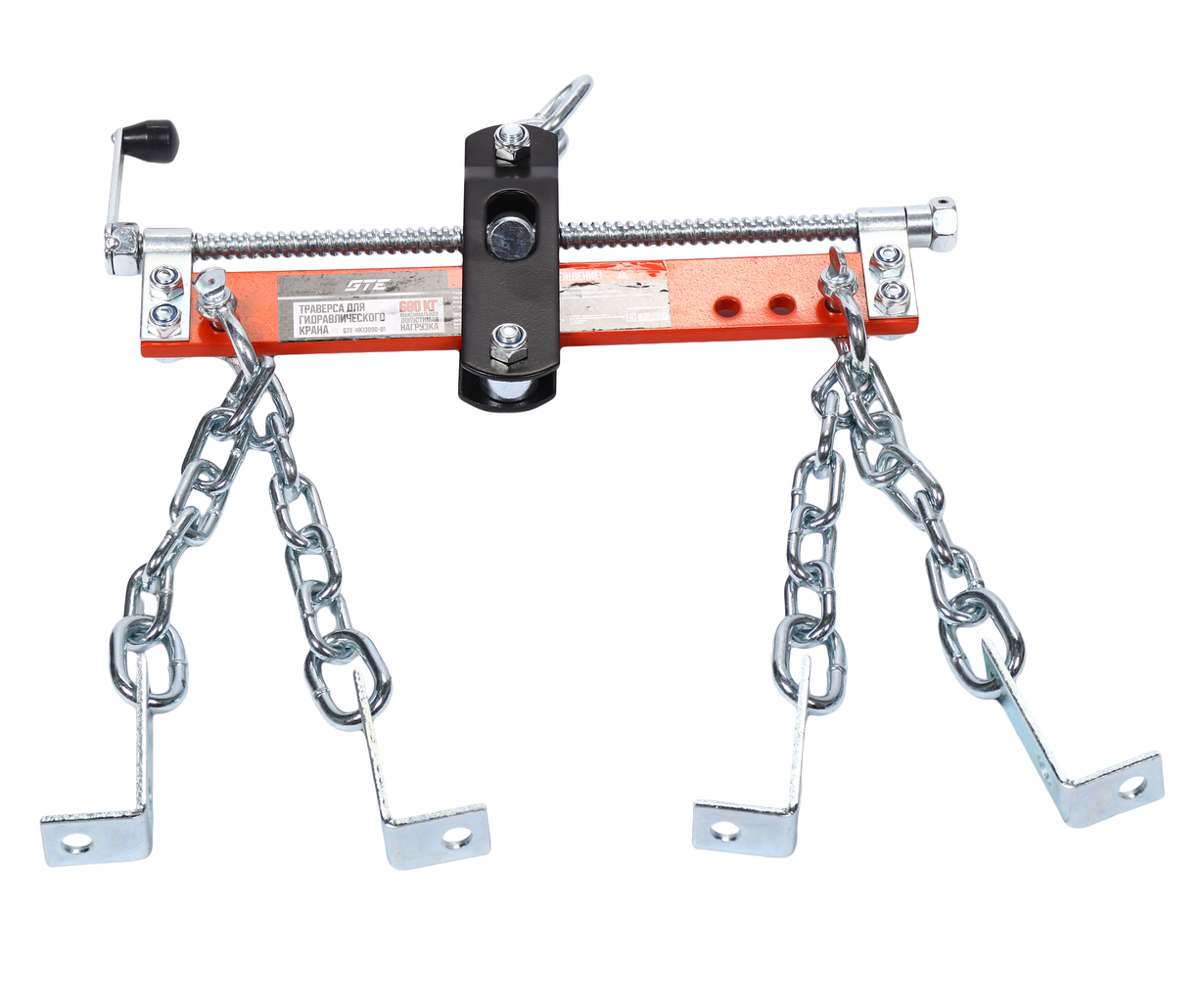Траверса для гидравлического крана GTE-HK13000-01 используется во время ремонта и обслуживания автотранспорта. Специальный винт позволяет регулировать положение узлов и агрегатов автомобиля, что обеспечивает удобство в эксплуатации. Траверса обеспечивает высокую эффективность при работе с разнотипным оборудованием в подвешенном состоянии, позволяя оператору поднимать грузы со смещенным центром тяжести и корректировать угол наклона опорной стрелы для двигателя.