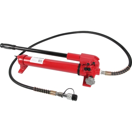 Гидравлический насос с ручным приводом — надежный источник энергии для гидравлического инструмента, который не зависит от внешнего питания. Двухступенчатая система увеличивает подачу жидкости на низком давлении, что ускоряет преодоление свободного хода штока инструмента и его возврат - таким образом сокращается общее время выполнения всех операций. Вторая ступень при высоком давлении и меньшей производительности предназначена для получения рабочего усилия исполнительного механизма.