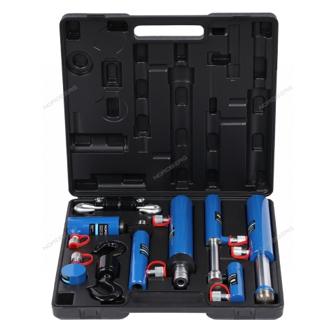 Комплект предназначен для выполнения кузовных работ. Подходит для восстановления геометрии кузова автомобиля, включая труднодоступные участки. Разнотипные цилиндры в комплекте обеспечивают универсальное применение — от незначительных ремонтов до устранения серьёзных деформаций.