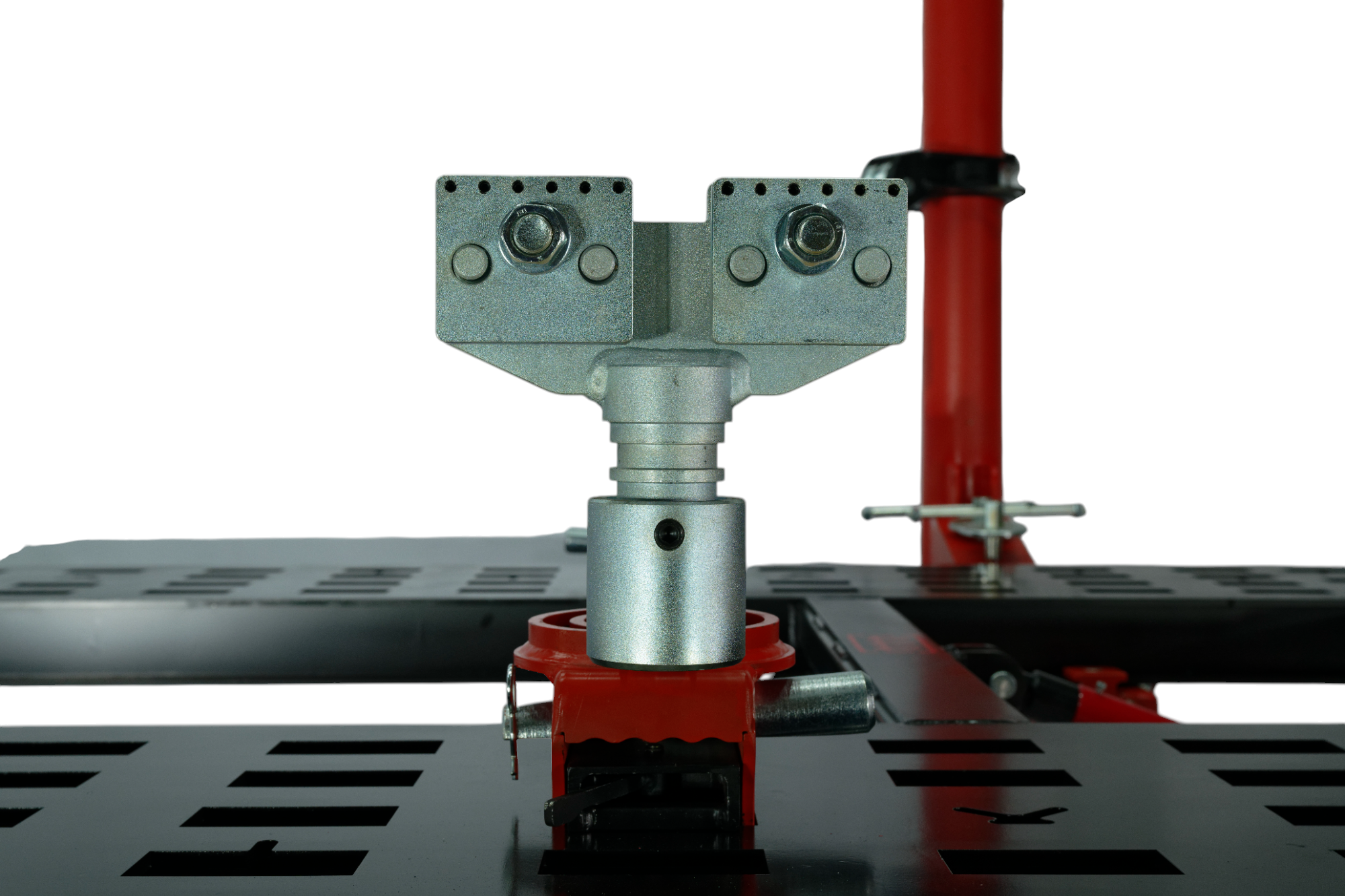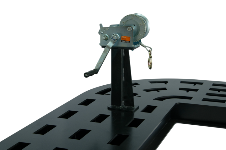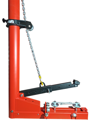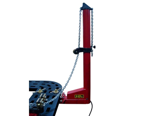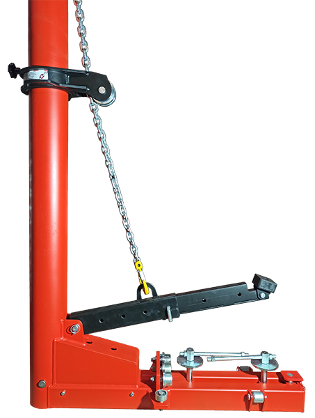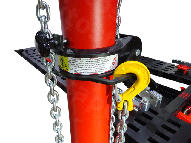 Специально спроектированная силовая башня, легко перемещается по всему периметру платформы и позволяет создать тяговое усилие в 10 тонн в любой точке платформы, на любой высоте. Силовая башня управляется пневмогидравлическим насосом.