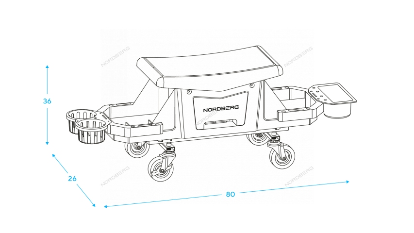 Он обеспечивает комфорт при выполнении ремонтных и сервисных работ сидя. Благодаря поворотным колёсам и встроенному лотку для инструментов можно свободно перемещаться по рабочей зоне, всегда имея необходимые инструменты под рукой.