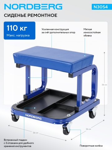 NORDBERG N30S4 — предназначено для комфортного размещения механика при выполнении работ по техническому обслуживанию и ремонту автомобилей. Обеспечивает удобное перемещение вдоль автомобиля и быстрый доступ к инструментам при работе на низкой высоте.