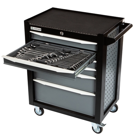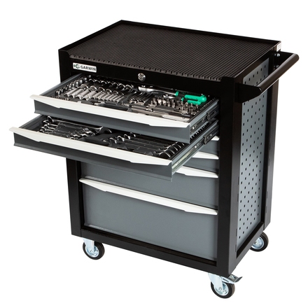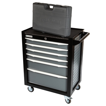 Тележка с инструментами GARWIN EQ-000012 с 6 полками является идеальным решением для специалистов автосервисов. Базовый набор из 169 предметов поставляется в ложементах, которые идеально помещаются на полках.