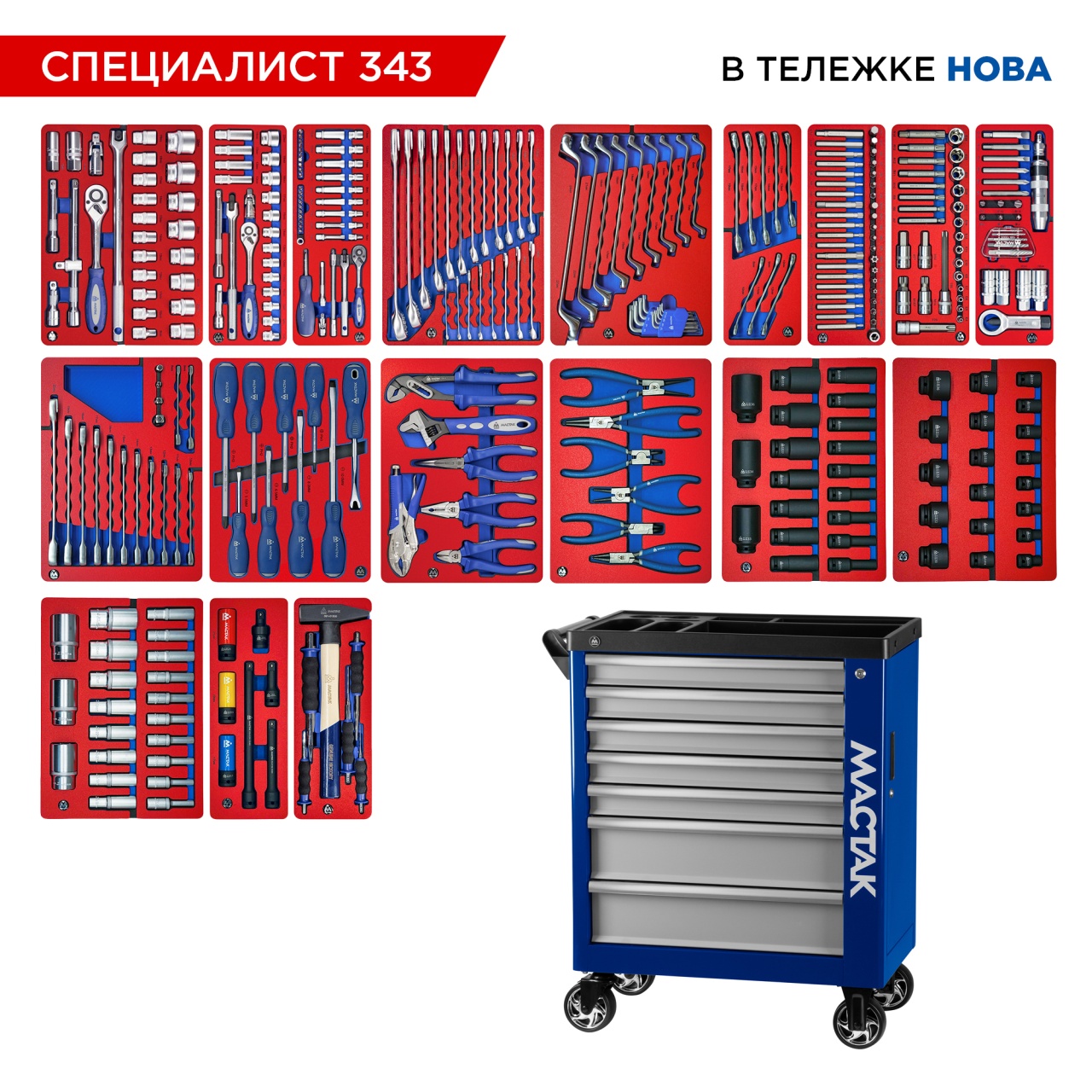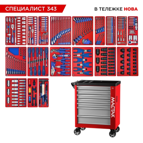 Набор инструментов 343 предмета, "СПЕЦИАЛИСТ 343", в тележке, МАСТАК 50-07343.
