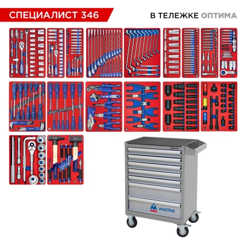 5-003222 (EVA 380×135 мм) Короткие 12-гранные 7, 8, 9, 10, 11, 12, 13, 14, 15, 17, 18, 19, 22 мм Глубокие 6-гранные 10, 12, 13, 14 мм Трещотка флажковая с кнопкой 45 зубцов, 200 мм Вороток с шарниром 230 мм Удлинители 75, 150 мм Кардан 50 мм 1/4" Головки и принадлежности