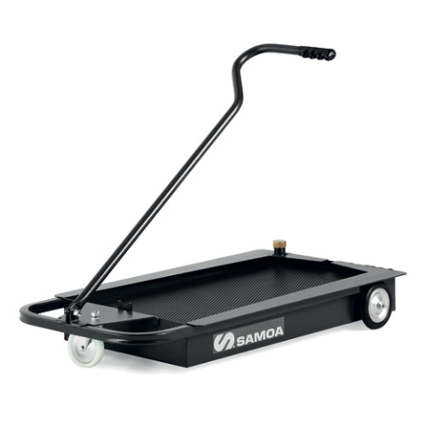 Низкопрофильная подкатная ванна предназначена для опорожнения самотеком через спускной кран или с помощью комплекта с насосом для откачки (номер детали 559100) через сухоразъемный гидравлический соединитель (номер детали 950 352) (не входит в комплект поставки). Ванна объемом 20 л (5,2 галлона США) для пассажирских автомобилей и небольших фургонов.