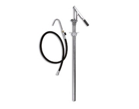 Рычажный насос для перекачки высоковязких материалов для бочек 20, 60 л. В комплекте регулируемый по высоте переходник 2" для монтажа непосредственно на бочку, крышку или контейнер, стальная всасывающая труба 620 мм, обратный клапан и поршень, уплотнения из NBR (бутадиен-нитрильный каучук). Производительность 100 см3 за один ход. Резьба на выходе 3/4" BSP (M).