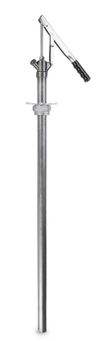 Рычажный насос для перекачки высоковязких материалов для бочек 60 л. В комплекте регулируемый по высоте переходник 2" для монтажа непосредственно на бочку, крышку или контейнер, стальная всасывающая труба 760 мм, обратный клапан и поршень, уплотнения из NBR (бутадиен-нитрильный каучук). Производительность 100 см3 за один ход. Резьба на выходе 3/4" BSP (M).