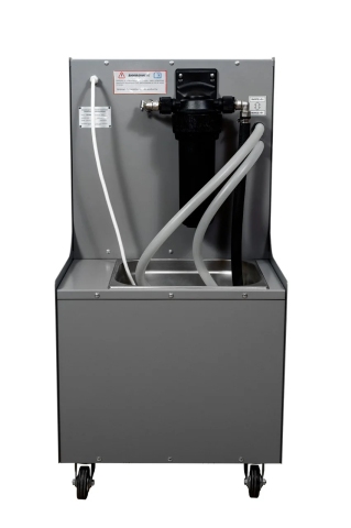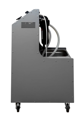 Подогретая до необходимой температуры моющая жидкость из бака при помощи насоса поступает в гидроблок. Давление нагнетания контролируется с помощью манометра. В зависимости от положения кранов на панели управления, по одному из шлангов моющая жидкость нагнетается в элемент системы охлаждения, а отложения, с обратным потоком, поступают в колбу фильтра, где задерживаются на фильтрующем элементе. Такое решение защищает деталь автомобиля от повторного засорения. Отфильтрованная жидкость возвращается в бак. В процессе промывки оператор меняет направление потока в выходных шлангах при помощи кранов управления. Рекомендуется делать 5-10 минутные паузы в работе насоса. Время, количество циклов и температуру моющей жидкости оператор определяет самостоятельно на основании опыта и рекомендаций производителя моющей жидкости. Рекомендовано к применению ТС11, ТС12 и ТС14.