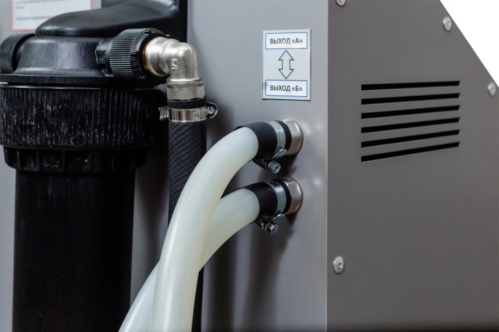 Установка РС1100 подключается к очищаемому компоненту системы охлаждения автомобиля с помощью двух шлангов («выход А/Б»). При необходимости используются адаптеры (приобретаются отдельно). Порядок подключения не имеет значения, т.к. направление потока задается оператором установки с помощью реверсивных кранов и может изменяться в любой момент времени, без выключения насоса. Поток жидкости можно контролировать визуально с помощью относительно прозрачных шлангов из кремнийорганической резины (силикон).