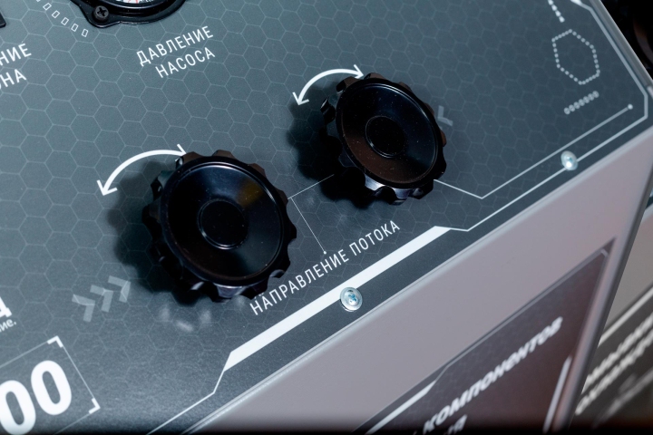 Регулировка избыточного потока жидкости, регулируется шаровым краном. Предотвращая разрушение промываемого компонента от повышенного давления.