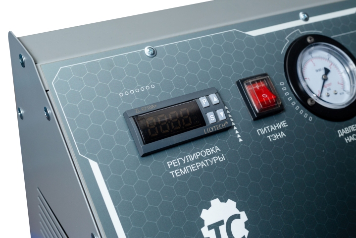 Подогретая до необходимой температуры моющая жидкость из бака при помощи насоса поступает в гидроблок. Давление нагнетания контролируется с помощью манометра. В зависимости от положения кранов на панели управления, по одному из шлангов моющая жидкость нагнетается в элемент системы охлаждения, а отложения, с обратным потоком, поступают в колбу фильтра, где задерживаются на фильтрующем элементе. Такое решение защищает деталь автомобиля от повторного засорения. Отфильтрованная жидкость возвращается в бак. В процессе промывки оператор меняет направление потока в выходных шлангах при помощи кранов управления. Рекомендуется делать 5-10 минутные паузы в работе насоса. Время, количество циклов и температуру моющей жидкости оператор определяет самостоятельно на основании опыта и рекомендаций производителя моющей жидкости. Рекомендовано к применению ТС11.
