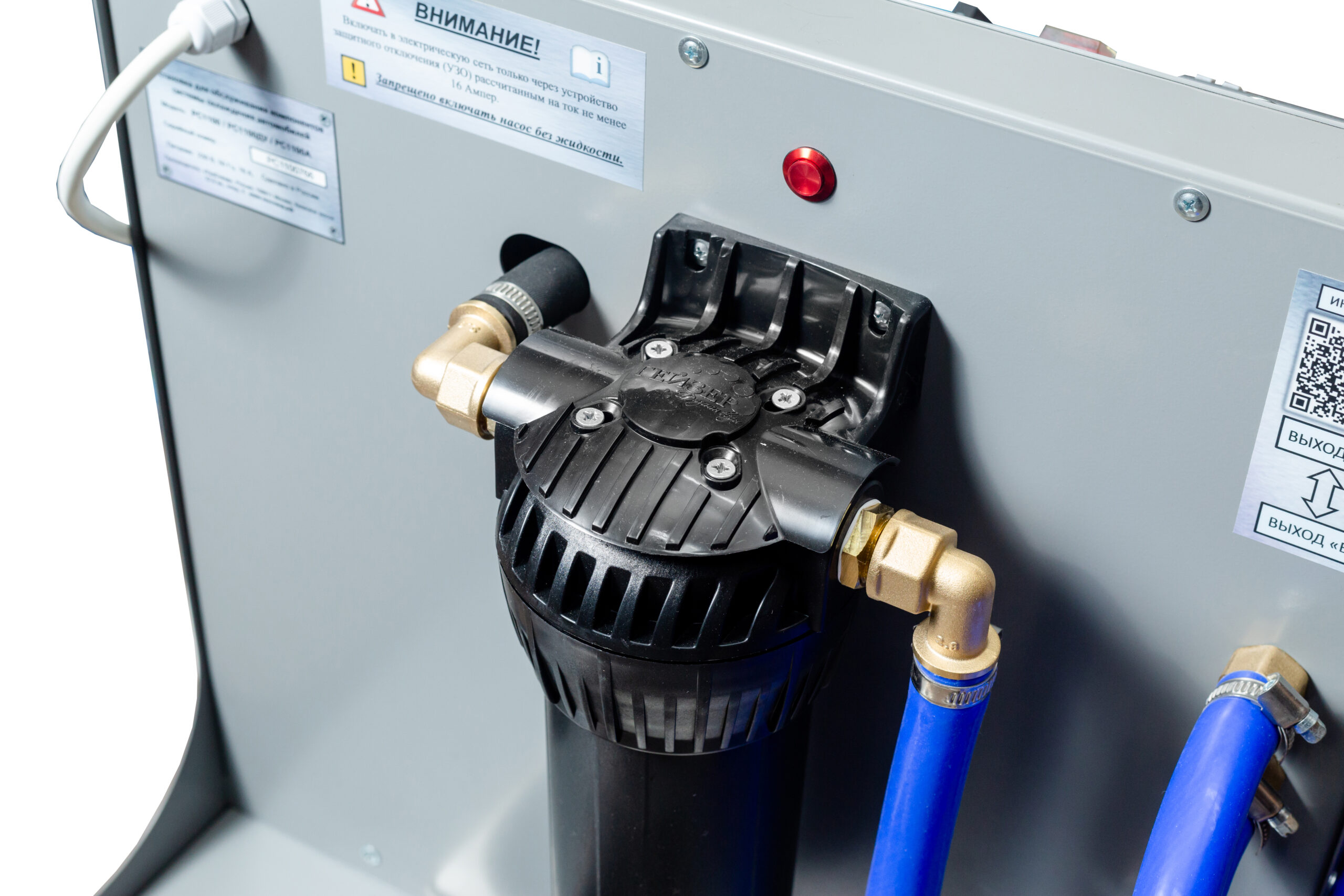 Установка РС1100 подключается к очищаемому компоненту системы охлаждения автомобиля с помощью двух шлангов («выход А/Б»). При необходимости используются адаптеры (приобретаются отдельно). Порядок подключения не имеет значения, так как направление потока задается оператором установки с помощью реверсивных кранов и может изменяться в любой момент времени, без выключения насоса.