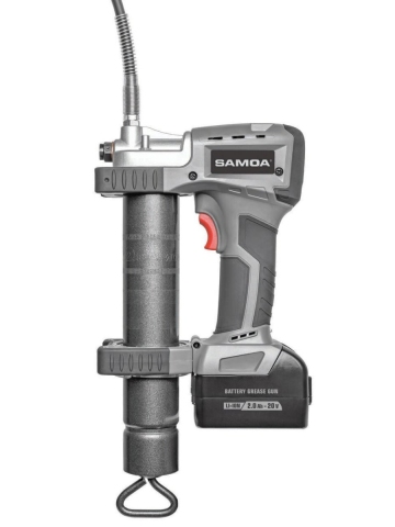 Пистолет для консистентной смазки SAMOA 160500 предназначен для стандартных смазочных патронов или емкостей. Пистолет оснащен LCD дисплеем, отражающим уровень заряда аккумулятора, количество выданной смазки, уровень оставшейся смазки в патроне. Есть сигнал срыва.