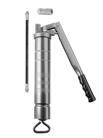 Рычажный насос для консистентной смазки SAMOA 12/SG-1 500 см3 101240 с заливочным клапаном 128 003 и резиновым шлангом с металлической оплеткой длиной 300 мм с четырехлепестковым гидравлическим соединителем (№ 137 031).