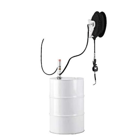 Комплект с насосом для масла 3:1 с катушкой и электронным счетчиком, монтаж на бочку. Полный комплект для бочек 205 л. Включает все аксессуары для установки и подключения источника сжатого воздуха.