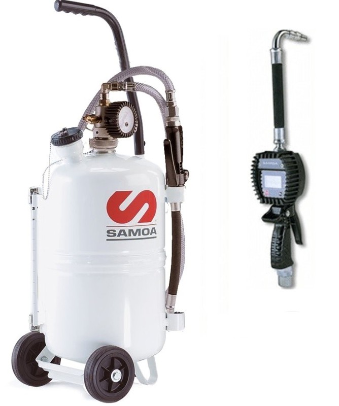 Мобильный накачиваемый маслораздатчик с расходомером для раздачи вязких смазочных материалов. Установка накачивается с помощью насоса для шин. Макс. давление 7 бар, предохранительный клапан входит в комплект.