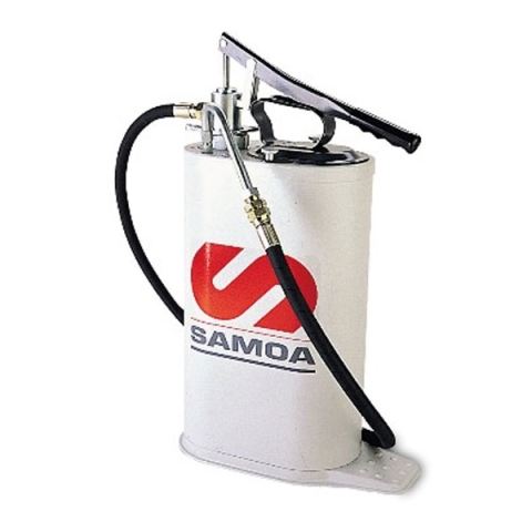 Насосы с цельнометаллической герметичной овальной емкостью объемом 16 л с ручкой для переноски и опорой для ноги, которая обеспечивает удобство работы и устойчивость насоса для раздачи масла. В комплекте: рычажный насос среднего давления (объем подачи 100 см3 за один ход) с резиновым шлангом 1,5 м с запорным клапаном и изогнутой насадкой 135º.