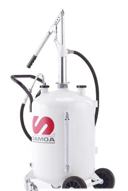 Автономная установка с емкостью 70 л (17 галлонов США) с датчиком уровня. Установка включает насос с рычажным принципом действия, счетчик масла с цифровым дисплеем на выходе насоса и подающий шланг 1,5 м с клапаном и насадкой, изогнутой под углом 135º.