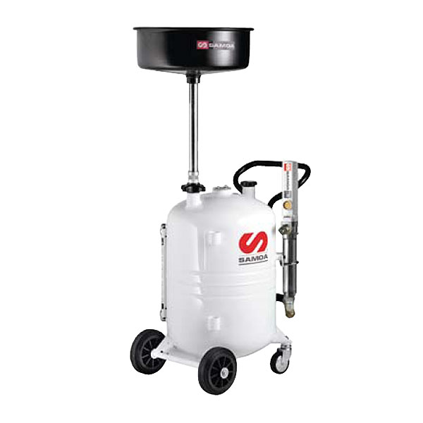 Мобильный маслосборник объемом 70 литров, слив дистанционным насосм. Опорожнение с помощью подключения установки к настенному насосу через гидравлическое соединение, расположенное в нижней части емкости. Предназначен для сбора самотеком моторного и трансмиссионного масла, а также других неагресивных автомобильных жидкостей класса A-III. Маслосборники могут стоять под подъемниками.
