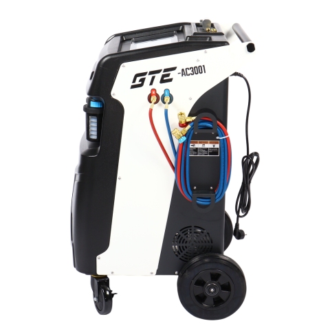 Универсальная автоматическая установка GTE-AC3001N с подогревом баллона, применяется для заправки и диагностики систем кондиционирования автомобилей. Установка работает с фреоном R-134a и обеспечивает автоматизацию следующих операций: запуск и остановка рекуперации хладагента, вакуумирование системы, запуск и остановка заправки масла по времени, заправка хладагента по электронным весам, промывка системы автомобиля.