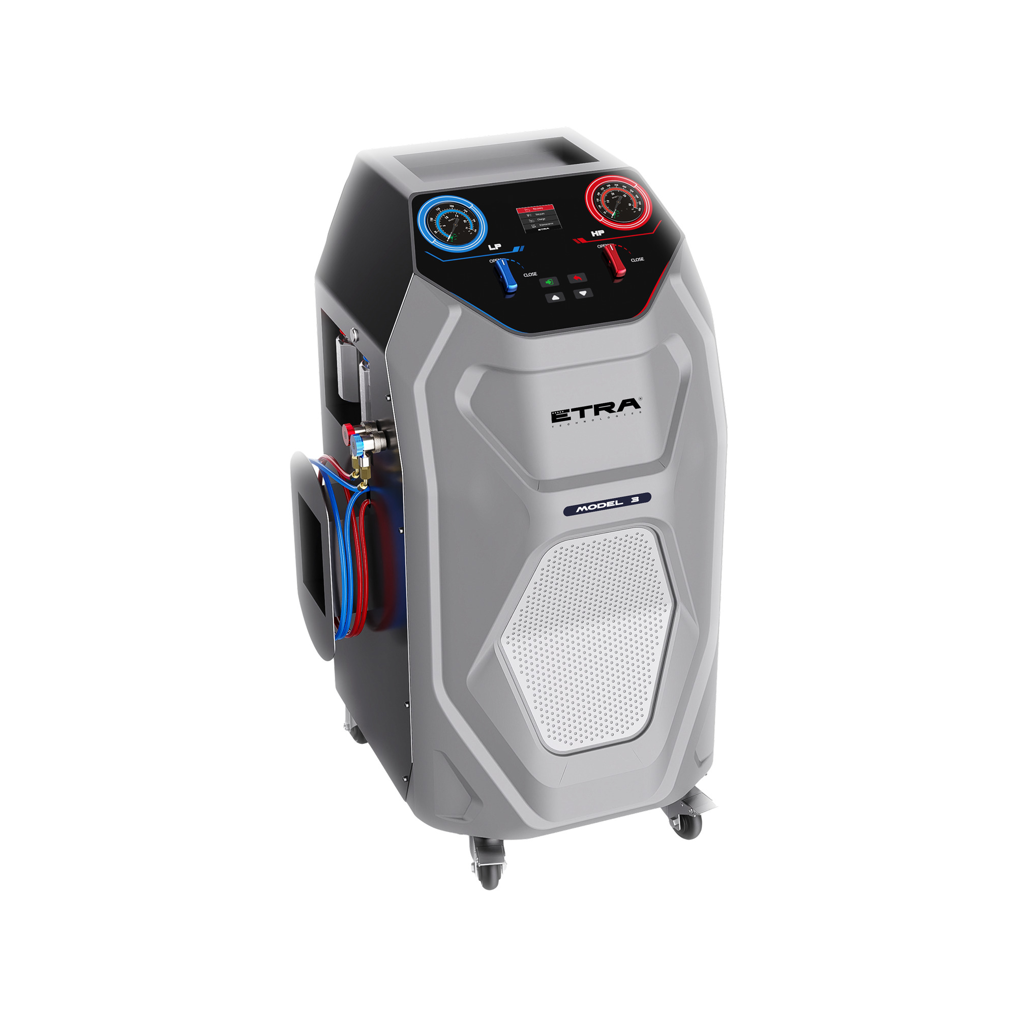 ETRA™ Model 3 - новейшая станция для заправки автокондиционеров, разработанная специально автомастерских со средней загруженностью. Данная установка работает в полуавтоматическом режиме — это сбалансированный подход к обслуживанию автокондиционеров, сочетающий в себе автоматизацию и контроль оператора.