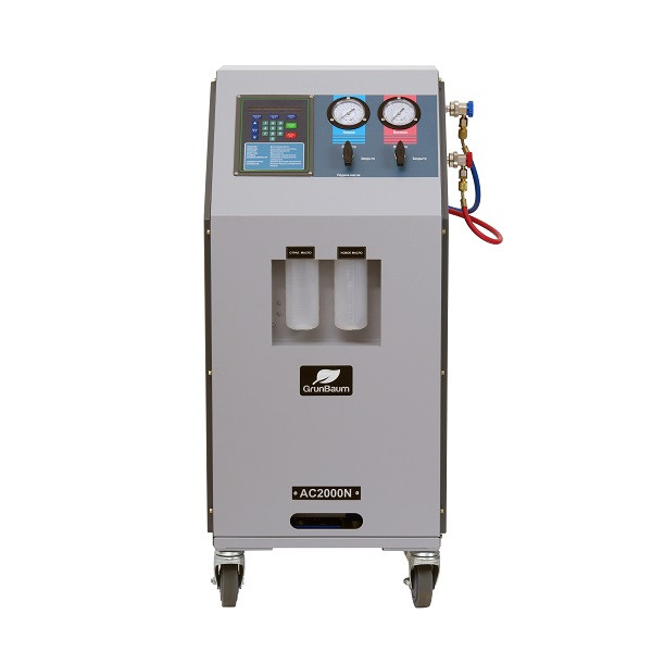 GrunBaum AC2000N - полуавтоматическая установка, ориентированная на развивающиеся СТО на пути к автоматизации в области оказания услуг по обслуживанию автомобильных кондиционеров. Максимально доступный аппарат с достаточным функционалом.
