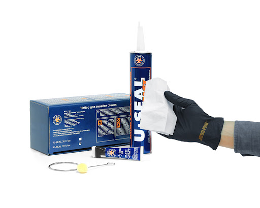U-SEAL 207 — набор для вклейки автомобильного стекла: полиуретановый клей для стекол U-SEAL 207 PLUS 310 мл, грунт U-Primer в тюбике с аппликатором 10 мл, очиститель U-Cleaner 30 мл, тампоны, струна и нитриловые перчатки.