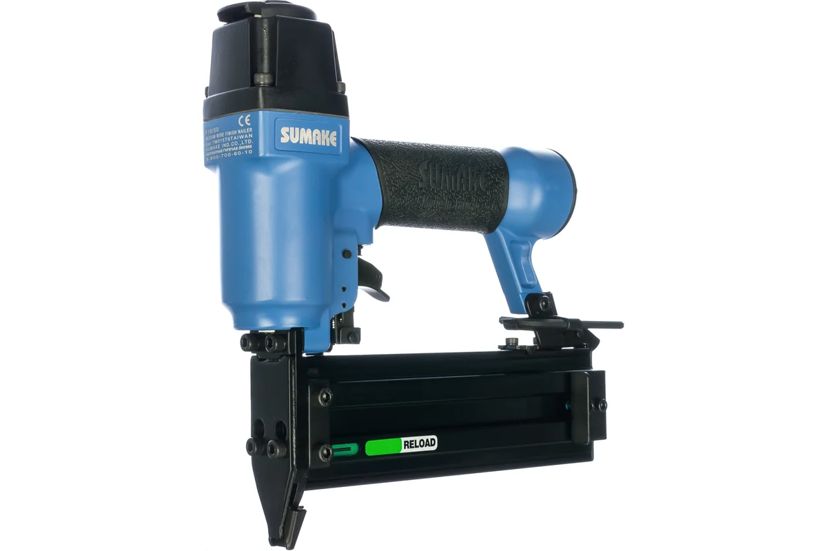 Гвоздезабивной пистолет Sumake F-18/50 - это инструмент, работающий на сжатом воздухе. Применяется для соединения различных материалов во время ремонтно-отделочных и строительных работ. С данной моделью можно использовать гвозди длиной от 20 до 50 миллиметров.
