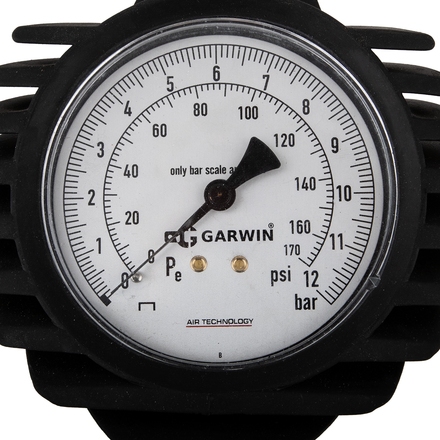 Пистолет для накачки шин GARWIN 806006-01 с универсальной насадкой и механическим манометром для контроля давления.