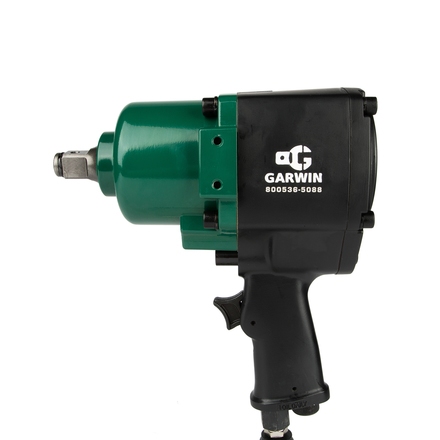 Гайковерт пневматический ударный GARWIN 800536-5088 в металлическом корпусе с ударным механизмом Twin Hammer. Используется для откручивания-закручивания болтового крепежа различных промышленных конструкций, узлов автомобиля (двигателя, ходовой части, подвески), коммерческого шиномонтажа.