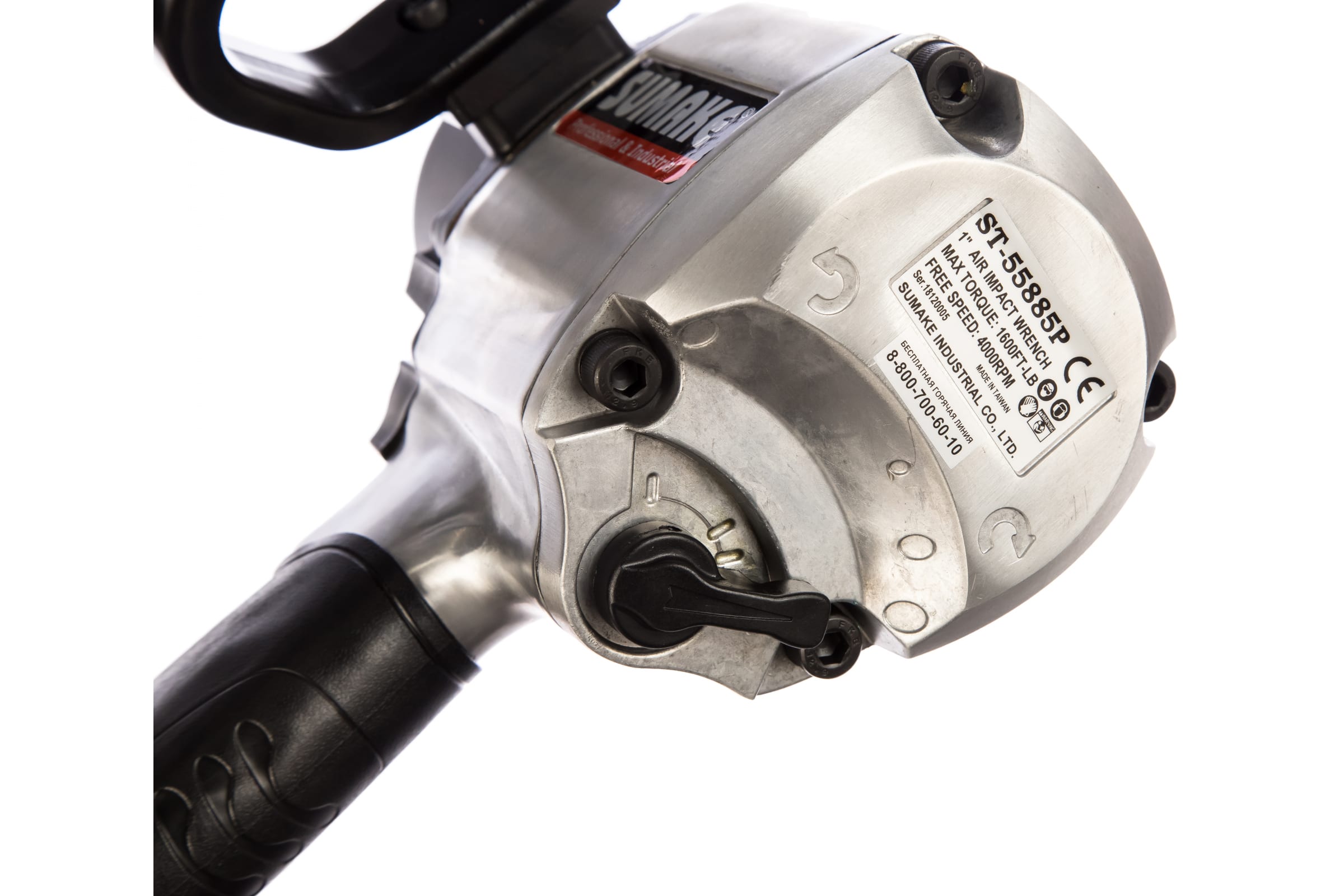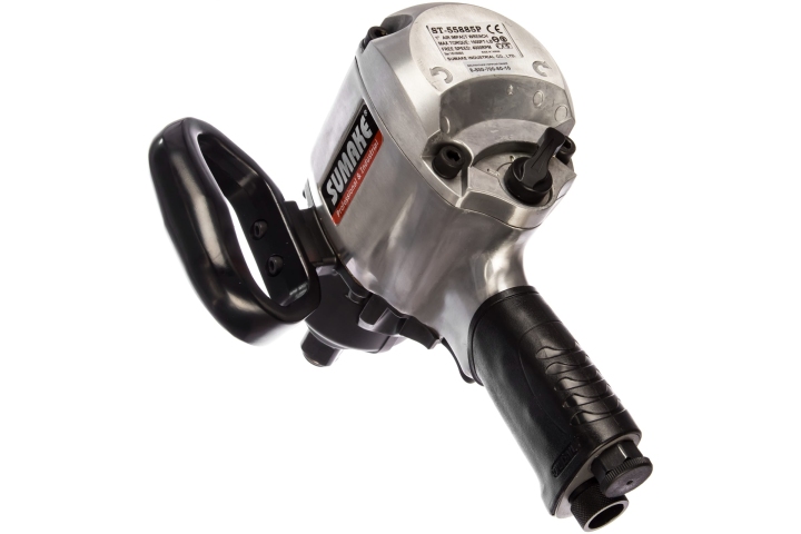 Пневмогайковерт SUMAKE ST 55885Р 38594 предназначен для завинчивания и отвинчивания любых типов крепежей удароимпульсным методом. Благодаря высоким показателям крутящего момента и скорости вращения шпинделя, инструмент отлично работает с твердыми соединениями. Принцип работы на сжатом воздухе позволяет добиться гораздо более низких показателей пожаро- и взрывоопасности. Удобная дополнительная рукоятка обеспечивает надежный и комфортный хват инструмента обеими руками. Корпус изготовлен из металла для надежной защиты от механических повреждений.