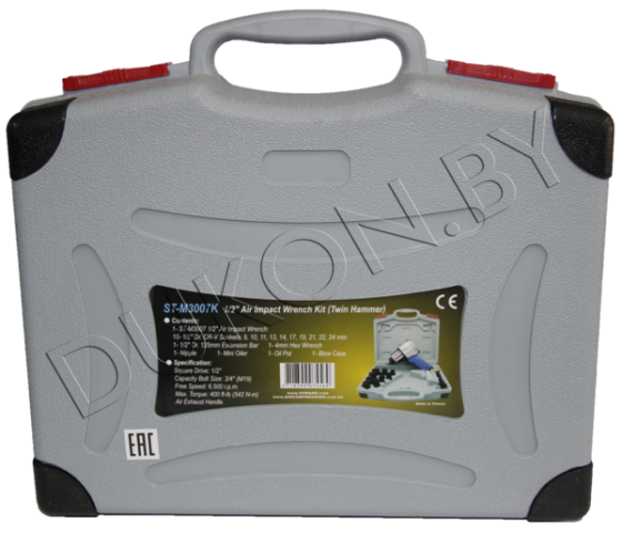 Пневматический ударный гайковерт Sumake ST-M3007K 8095020 используется, например, для смены шин, ремонта и монтажа. Металлический корпус защищает внутренние узлы от повреждений и более надежен в тяжелых условиях производства. В комплекте с инструментом поставляется оснастка, что исключает необходимость приобретать ее отдельно. Кейс решает вопрос хранения и транспортировки.