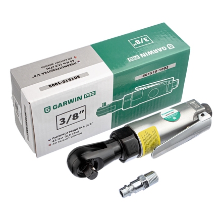 Пневмотрещотка GARWIN PRO 801510-1002 в металлическом корпусе с рычажным включателем, двумя режимами работы (1 на откручивание, 1 на закручивание). Предназначена для монтажа резьбового крепежа.