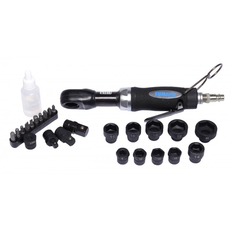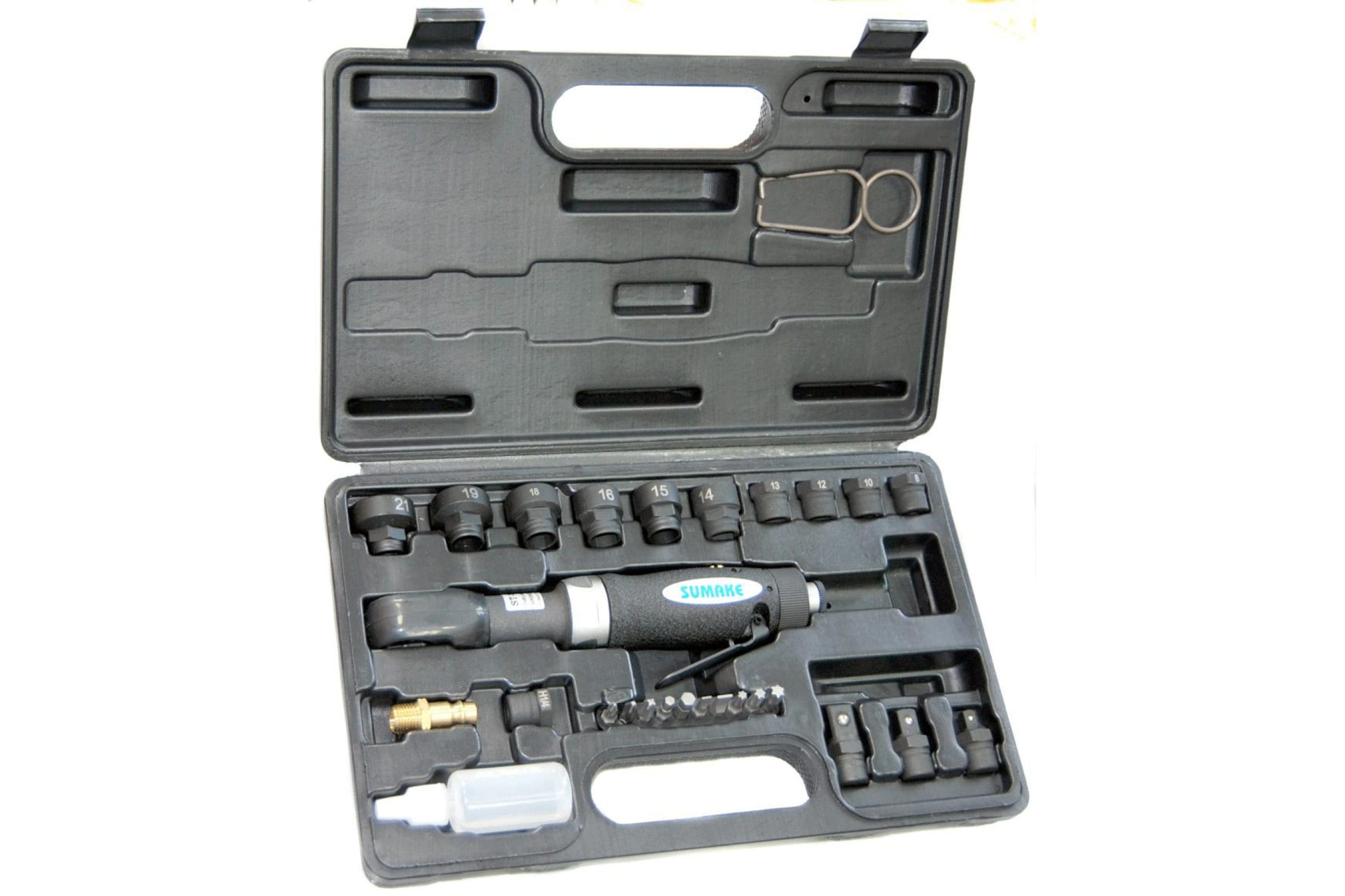 Угловой пневмогайковерт SUMAKE ST-5510K с набором головок 4118260 применяется для затягивания и ослабления болтов и гаек.