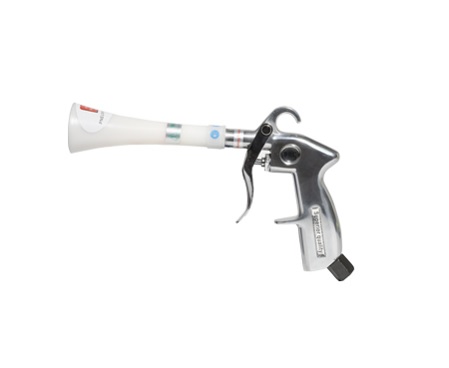 Пистолет идеально подходит для сухой/влажной уборки всех видов загрязнений обивки, кондиционирования воздуха, элементов из пластика, элементов зеркал, сидений, ковриков, нагнетания воздуха и других сложных для удаления загрязнений. Очистку можно провести с помощью ручного распылителя с моющим средством.