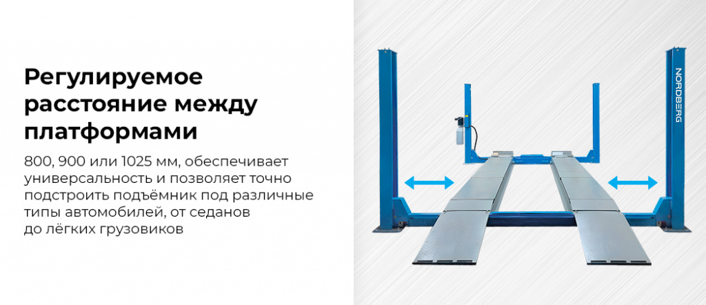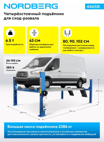 NORDBERG 4465B — это профессиональный четырёхстоечный подъёмник, сочетающий высокую грузоподъёмность, точность и безопасность. Надёжное решение для автосервисов, где требуется качественное и эффективное обслуживание.