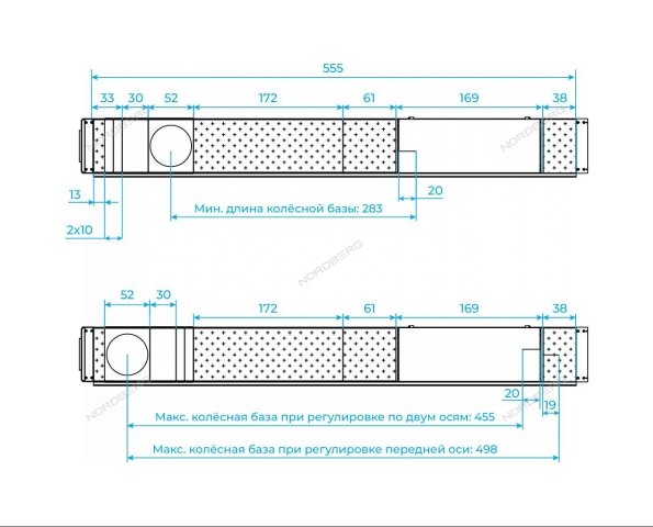 Максимальная колесная база при регулировке передней оси, см | 497.6 |